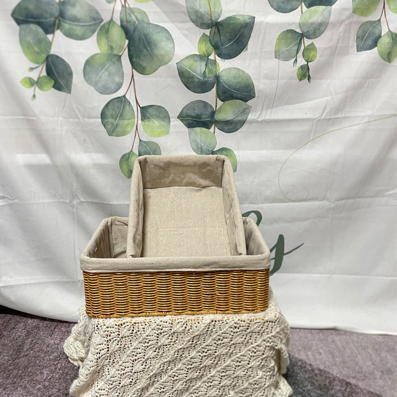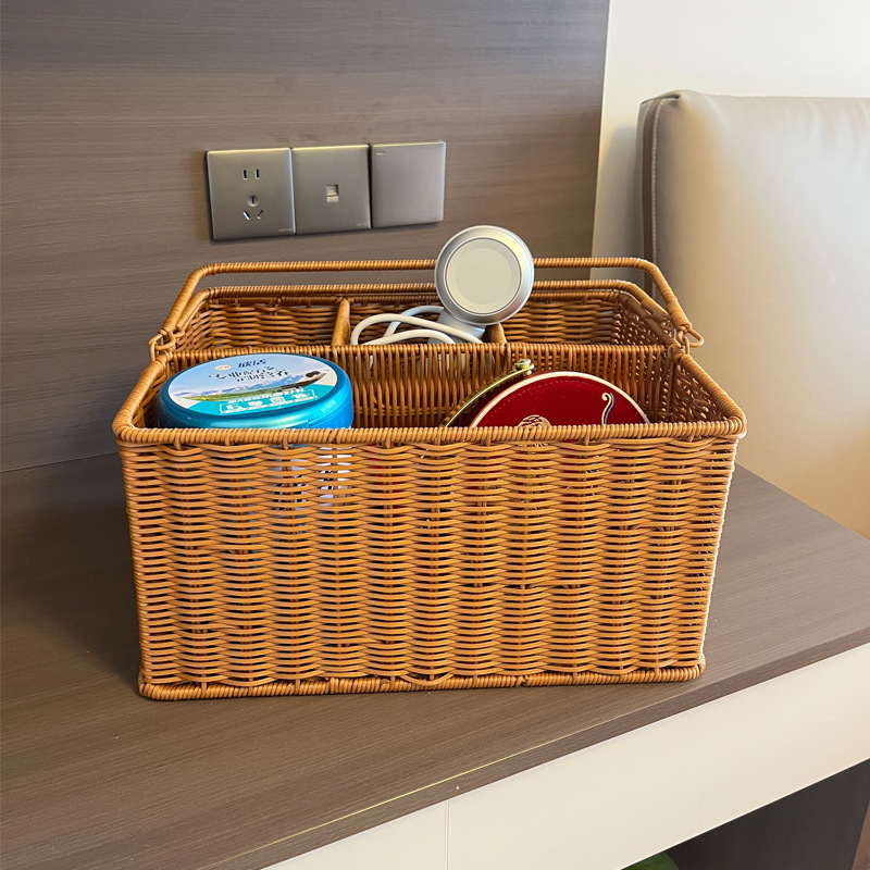籐風収納バスケット シンプルスタイル 家庭用籐バスケット 手編み化粧品収納バスケット スナック収納バスケット