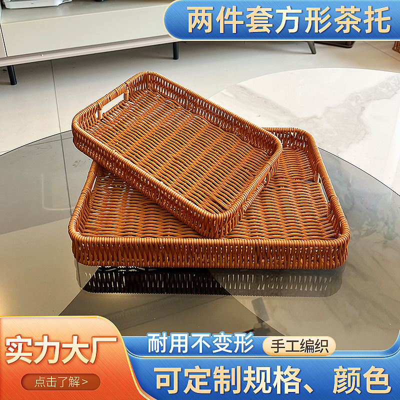 日本式茶盤茶托は藤編みの方形茶托レストランのパン菓子盤客間茶托を模している