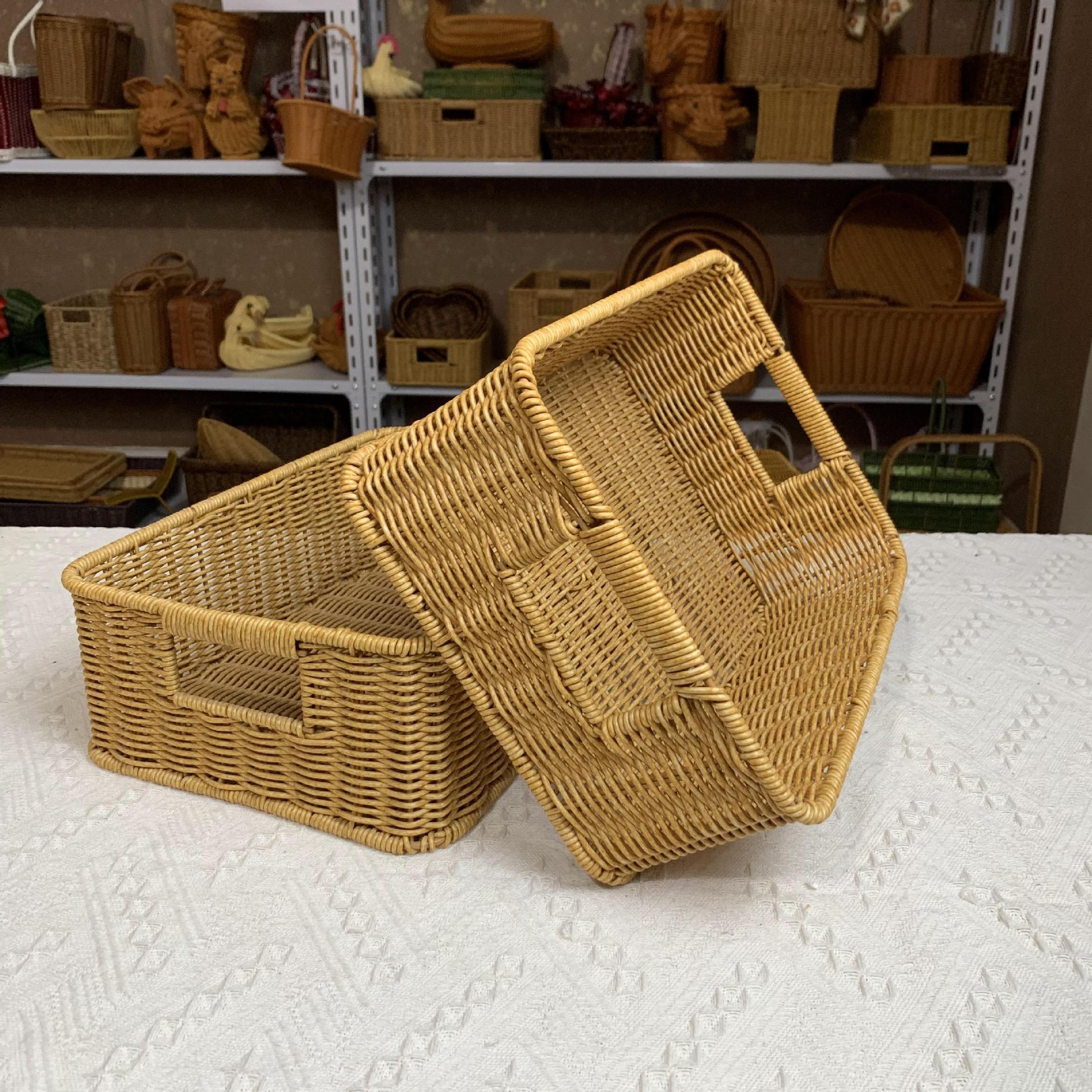 籐編みパンフルーツスナックスーパー陳列展示バスケットデスクトップ置物整理収納枠スクエア編みバスケット
