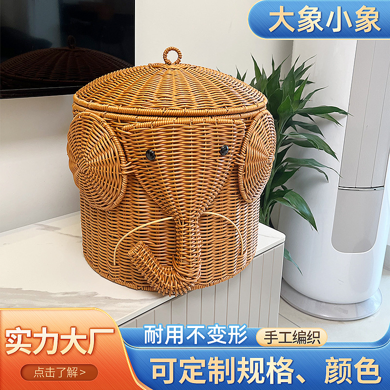 かわいい象の収納桶は藤編みの置物に似せて、子供のおもちゃの服を収納します。