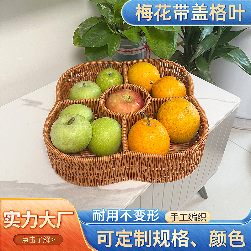 新商品創意花果物盆ナッツバスケット収納仕切りバスケット家庭用リビングルーム茶卓収納籐編みフルーツバスケット