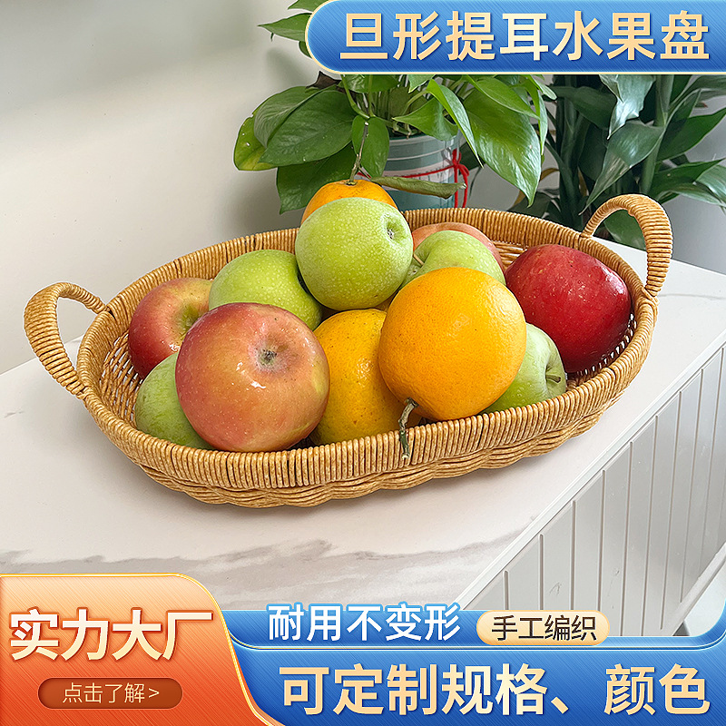 旦形提耳果物皿手作り編み収納かご果物かごナッツかご客間間食キャンディー収納かご