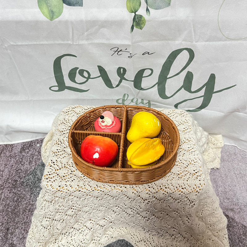 新商品創意花果物盆ナッツバスケット収納仕切りバスケット家庭用リビングルーム茶卓収納籐編みフルーツバスケット