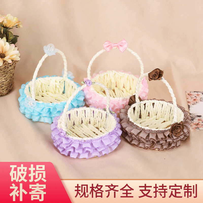 洋式の結婚式のレースの花のかごのお祝いのキャンディーのかごの手作りの編み物の収納かごの結婚祝いの置物のかごのdiyの花のかご
