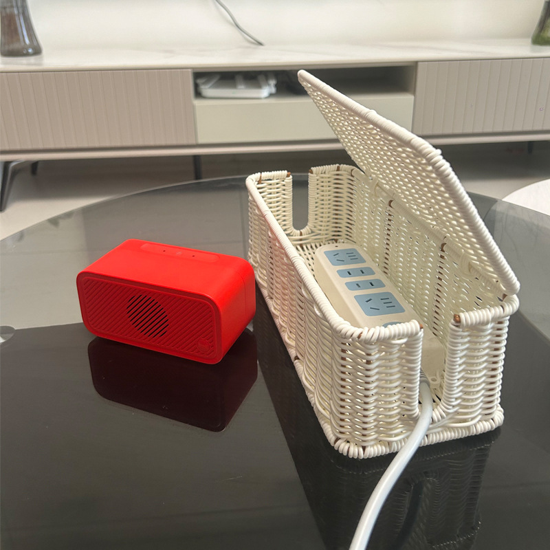 北欧の田舎風デスクトップソケットオーガナイザーボックス模造籐寝室データケーブル電源コードオーガナイザー収納バスケット