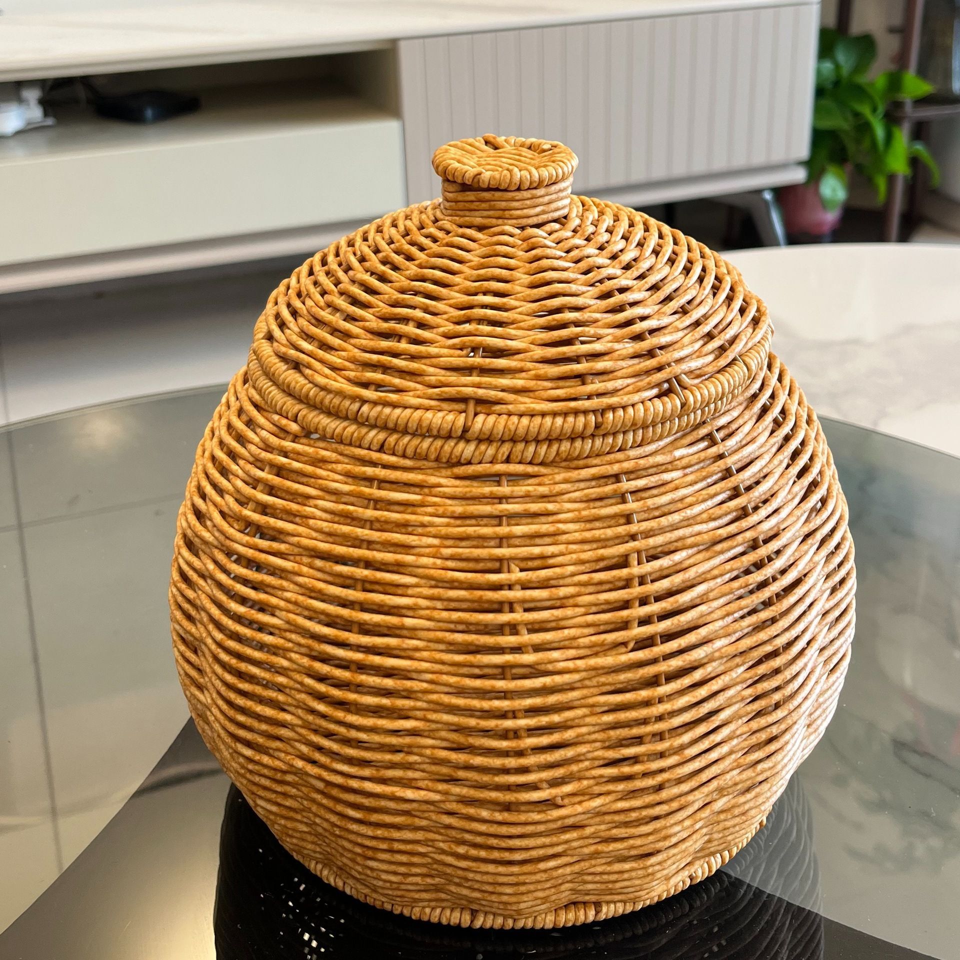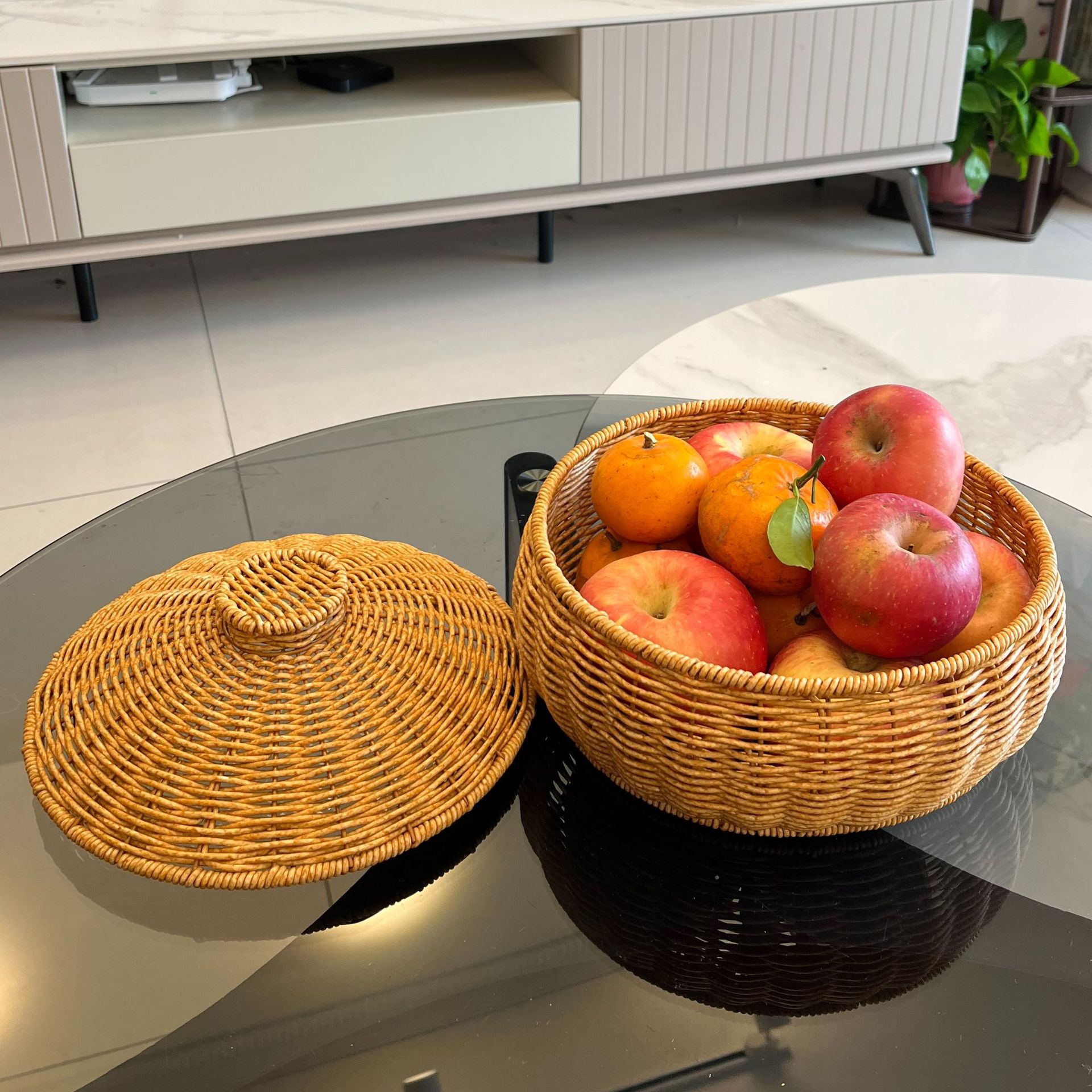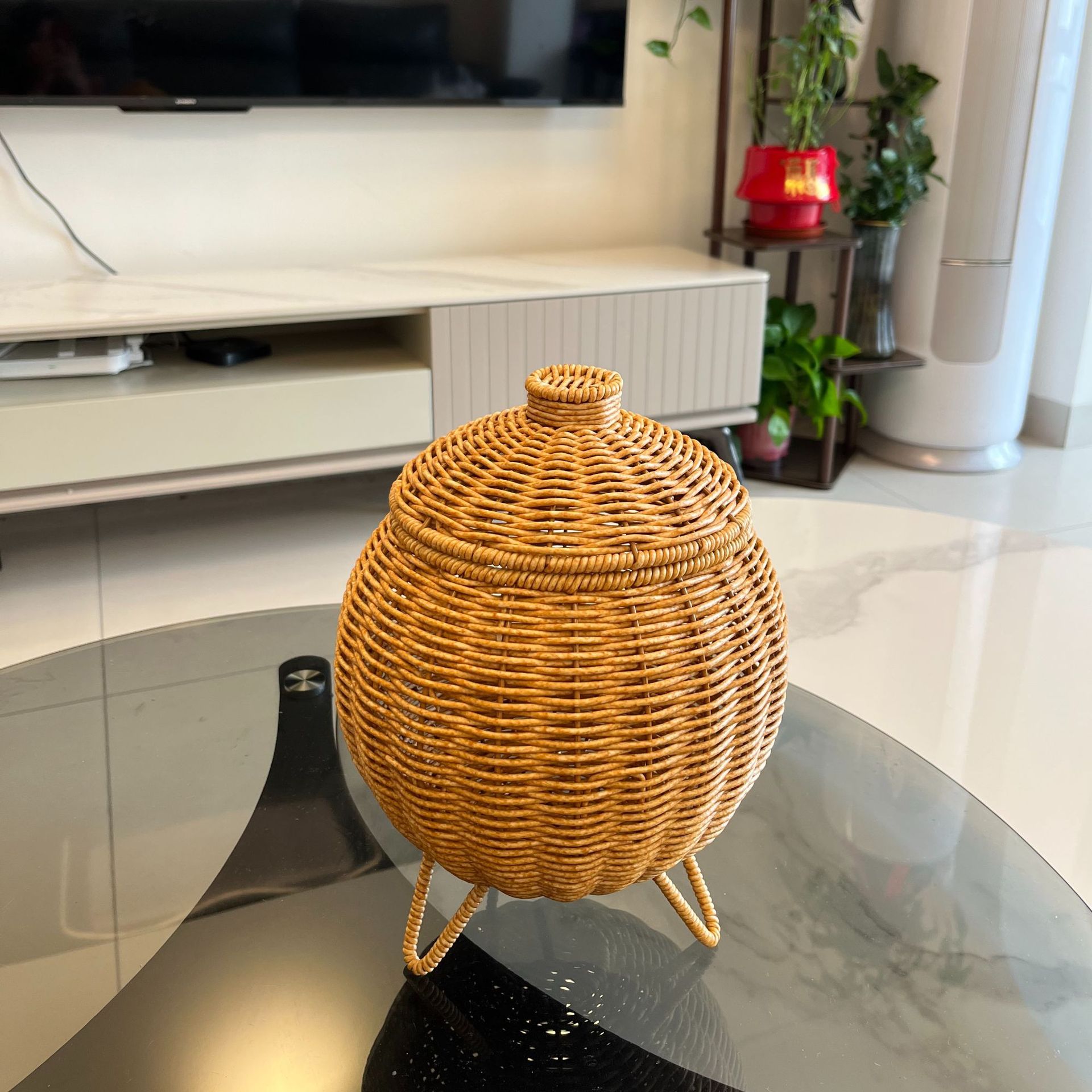 新しいカバー付きカボチャバッグ、カバー付き模造籐収納瓶、リビングルームのフルーツスナックバスケット、茶瓶収納ボックス