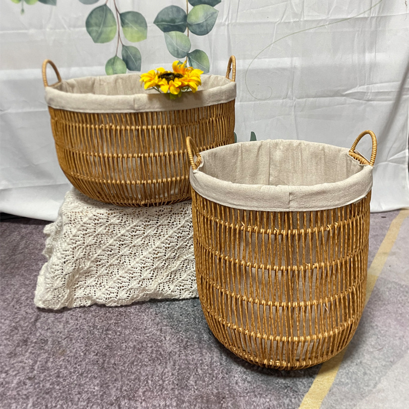Z02 浅色の布製ランドリーバスケット、純手作りの籐風収納かご、和風シンプル家庭用収納ランドリーバスケット