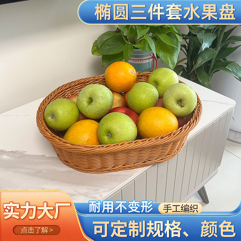 籐編みフルーツバスケット楕円3点セットフルーツプレート家庭用収納展示バスケットフルーツバスケットお菓子バスケット