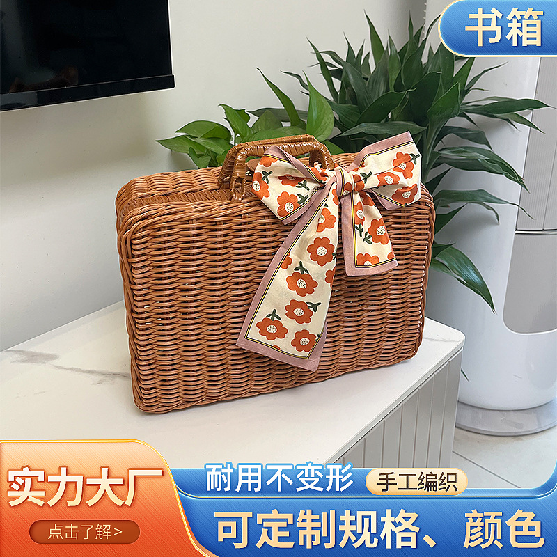 模造籐織スーツケース、ブックボックス、お土産スーツケース、化粧品整理と装飾、レトロな小道具収納籐ボックス