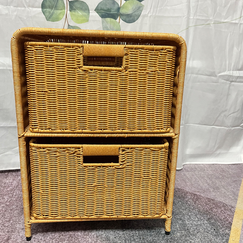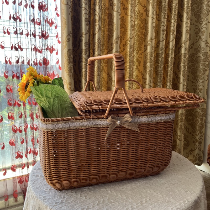 模造藤プラスチック編みハンドル角型ピクニックバスケットpp大容量二重ショッピング野菜バスケット摘採果物野菜バスケット