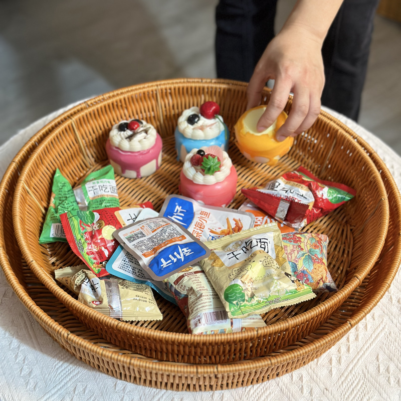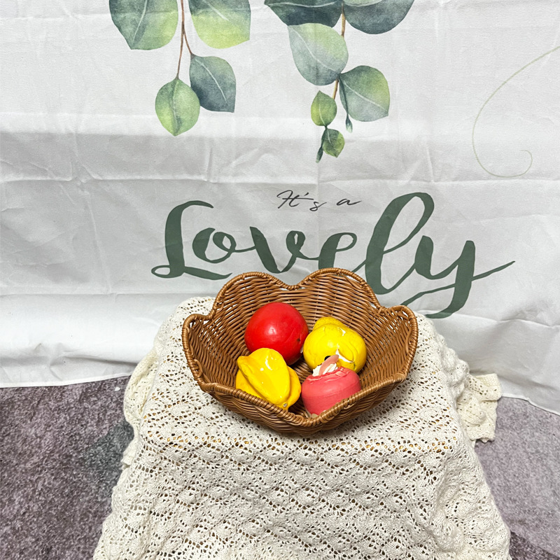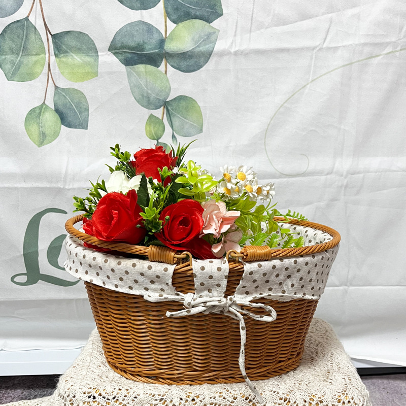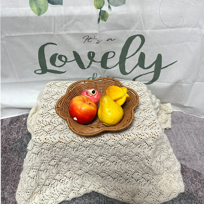 籐編みフルーツバスケットキャンディープレートパンバスケットスナックドライフルーツ野菜手作りプラスチック模造籐花フルーツ