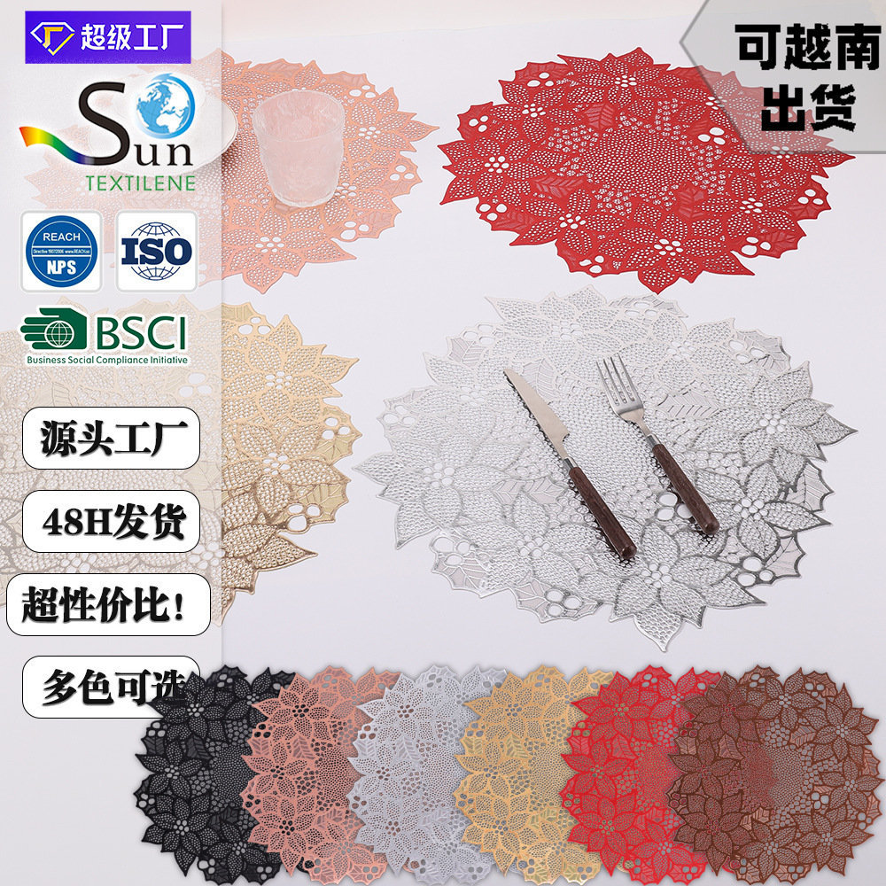 聖特食マットPVC箔押し洋食テーブルマット十二辺角断熱マット透かし彫りレストラン装飾マット卸売り