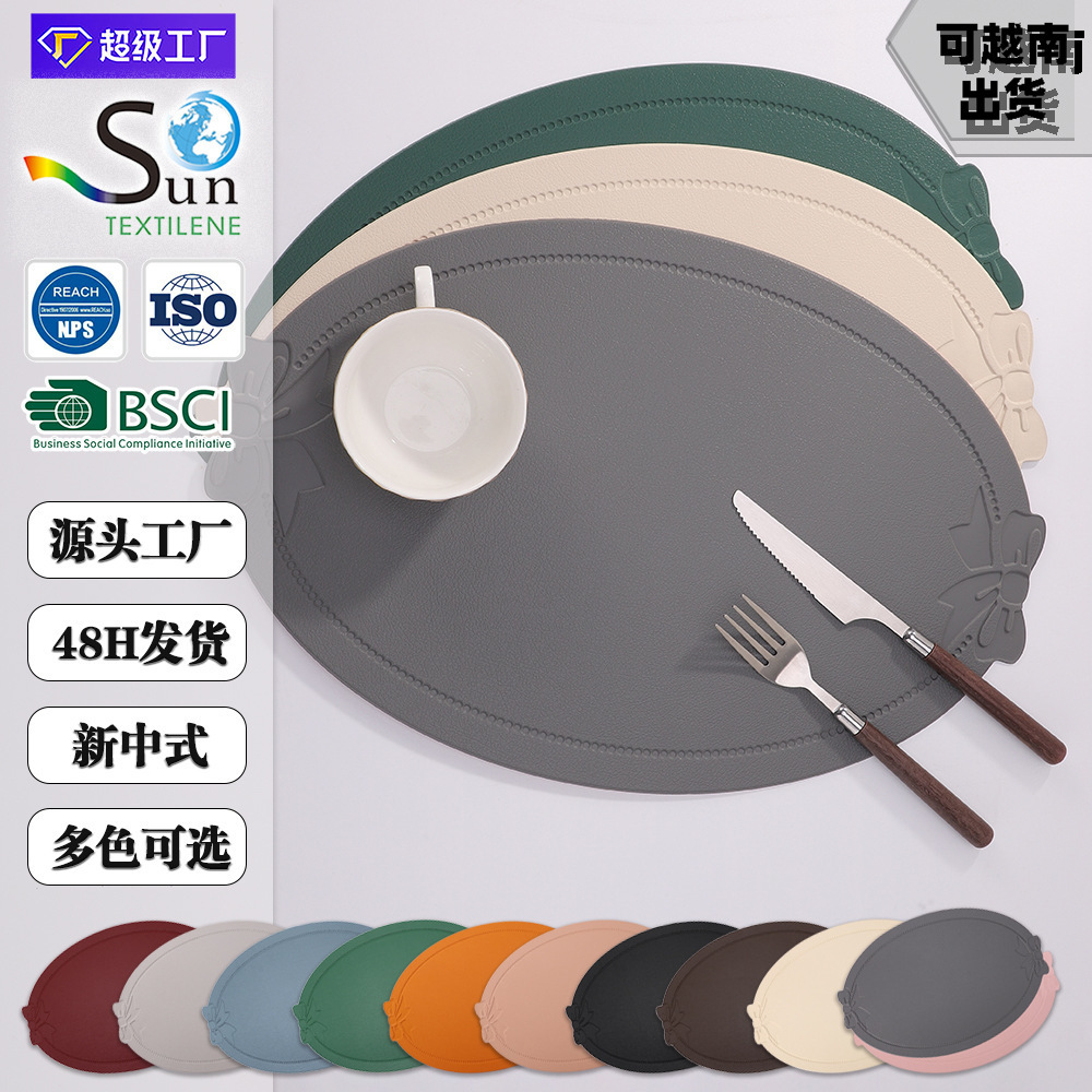 セントプレースマット レザー PVC-12YH 新中国風 リボン オーバル 北欧 シンプル エンボス加工 断熱 防水