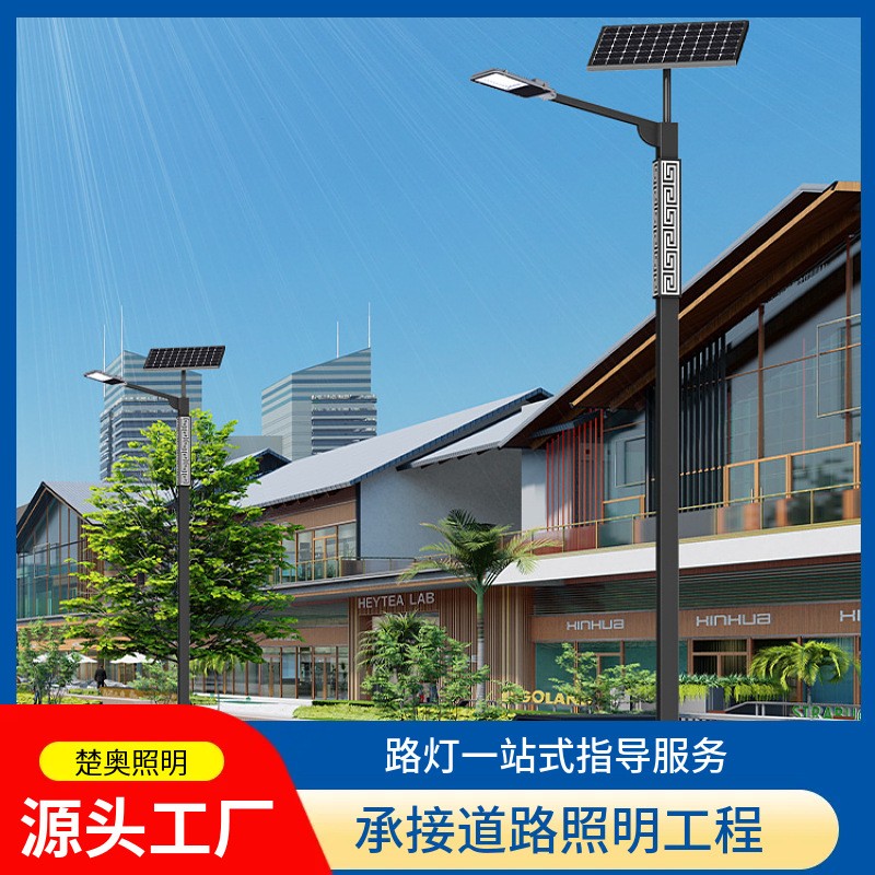 アンティークパターン LED ソーラー街路灯 6m 中国結び目屋外中国風の新しい農村風景中庭道路正方形ランプ