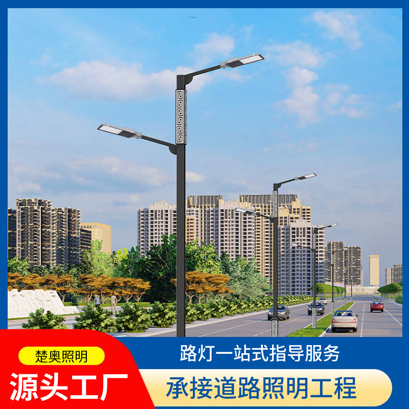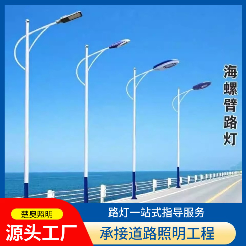 都市道路街路灯、新田舎道路、市制自作曲げアーム、ハイアーム、コンクアーム、シングルアーム、ダブルアーム、溶融亜鉛メッキ一体型街路灯ポール