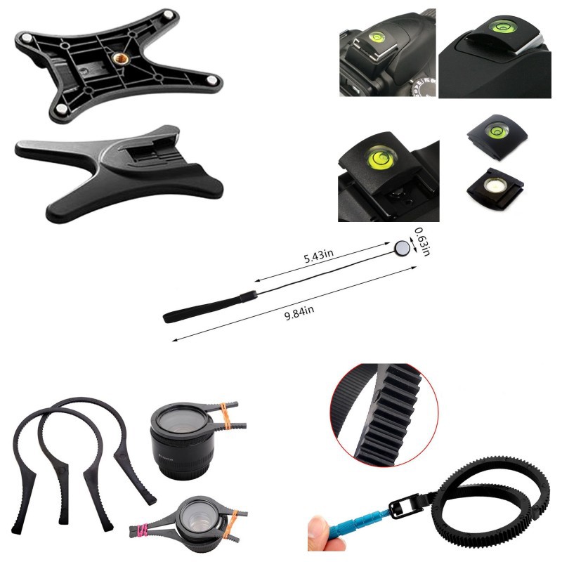 ストロボ熱靴ベースブラケットレンズカバー紛失防止ロープと焦環熱靴水準器フィルター取り外しレンチ