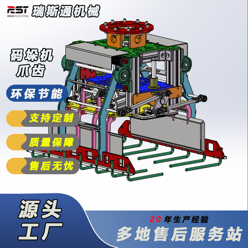 ロボットハンドのパレタイザーは石膏モルタルをつかんでロボットの爪の歯を運びます。