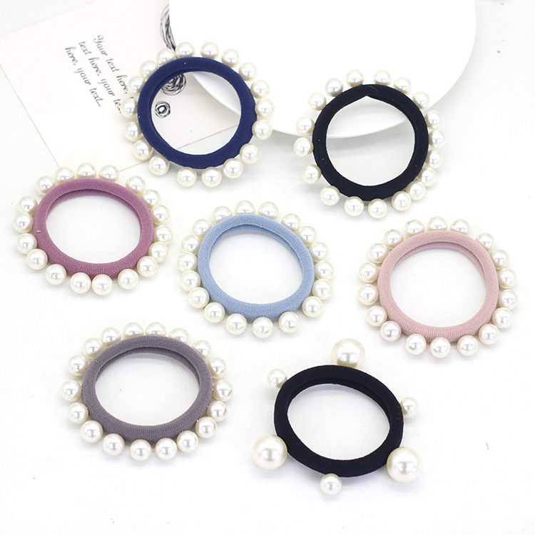 メーカーの卸売りは簡単で、真珠のシームレスな髪輪18個の大きな真珠の高弾力性の厚いタオル輪2元店です。