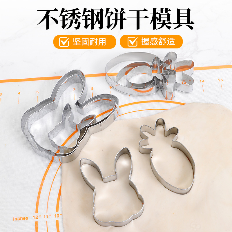 ステンレス製のウサギの頭のビスケットの鋳型の4セットのニンジンのウサギのクッキーはDIYのビスケットの焙煎ツールのセットを切ります。