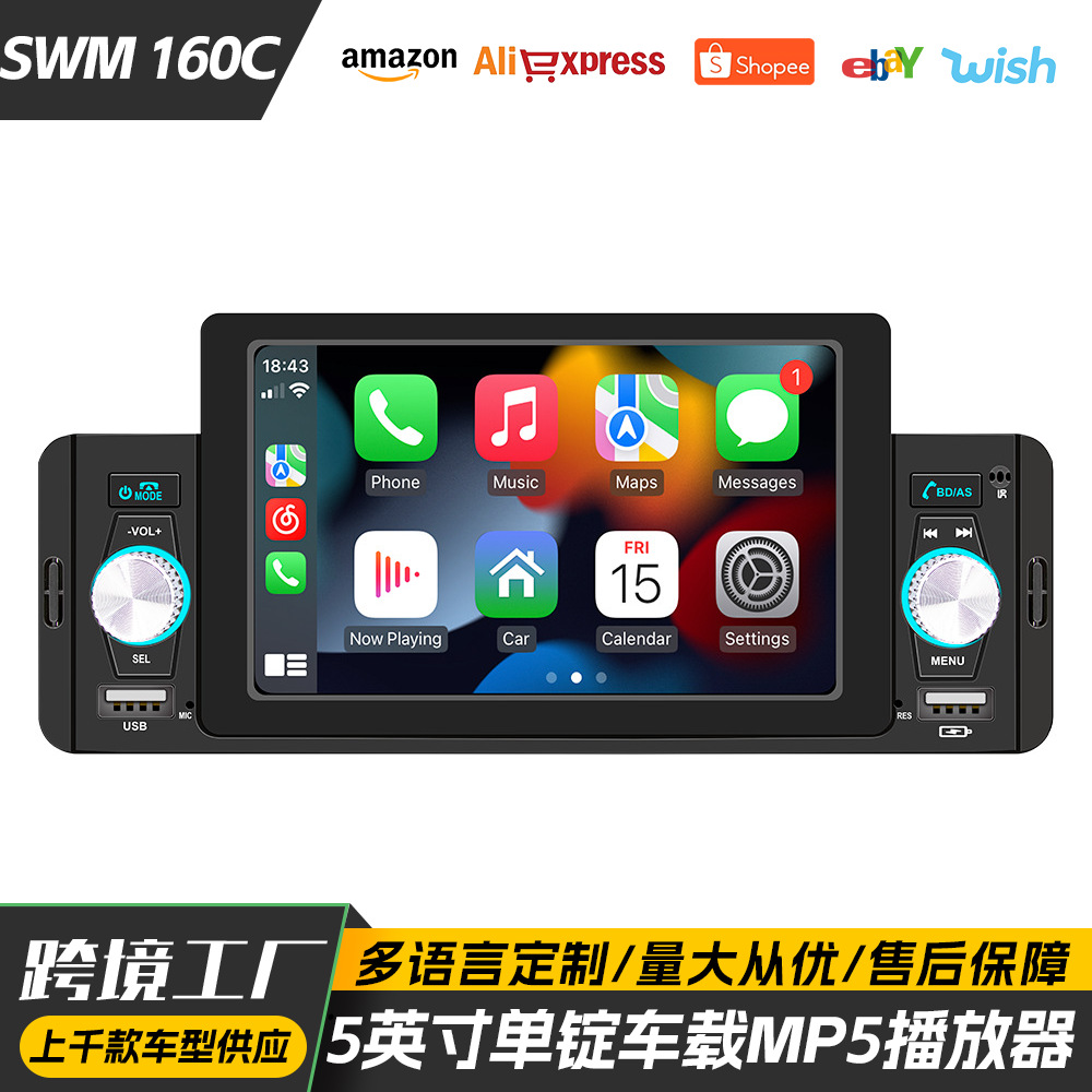 有線/無線carplay 5インチ単錠車載mp5プレーヤーbluetooth携帯電話相互接続バックラジオ