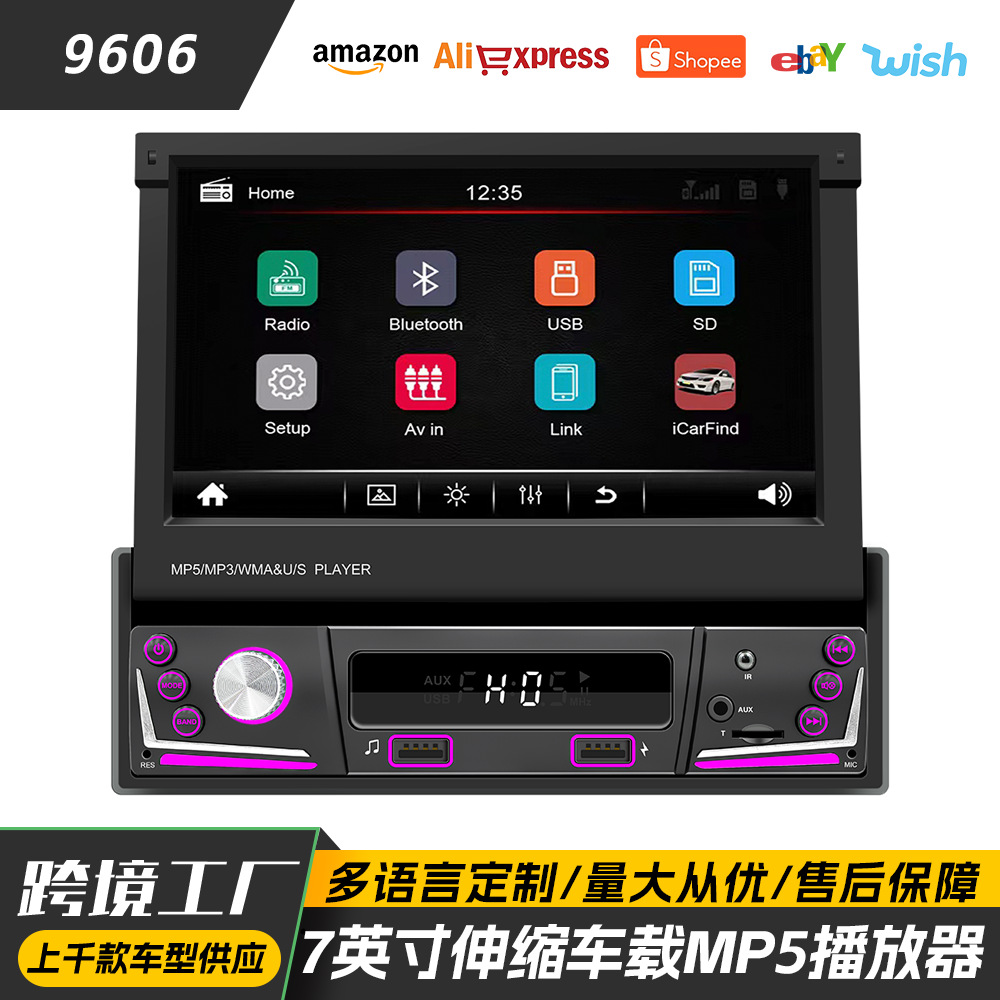 新型7インチ伸縮車載mp5プレーヤーbluetooth自動車オーディオ携帯電話相互接続カードusbラジオ本体
