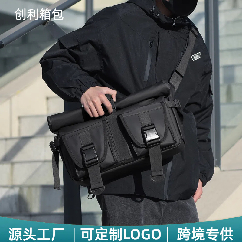 クロスボーダーバイクスタイルメンズバッグ、斜め掛けバッグ、多用途ショルダーバッグ、2024秋冬多機能サイクリングバッグ、トレンディでクール
