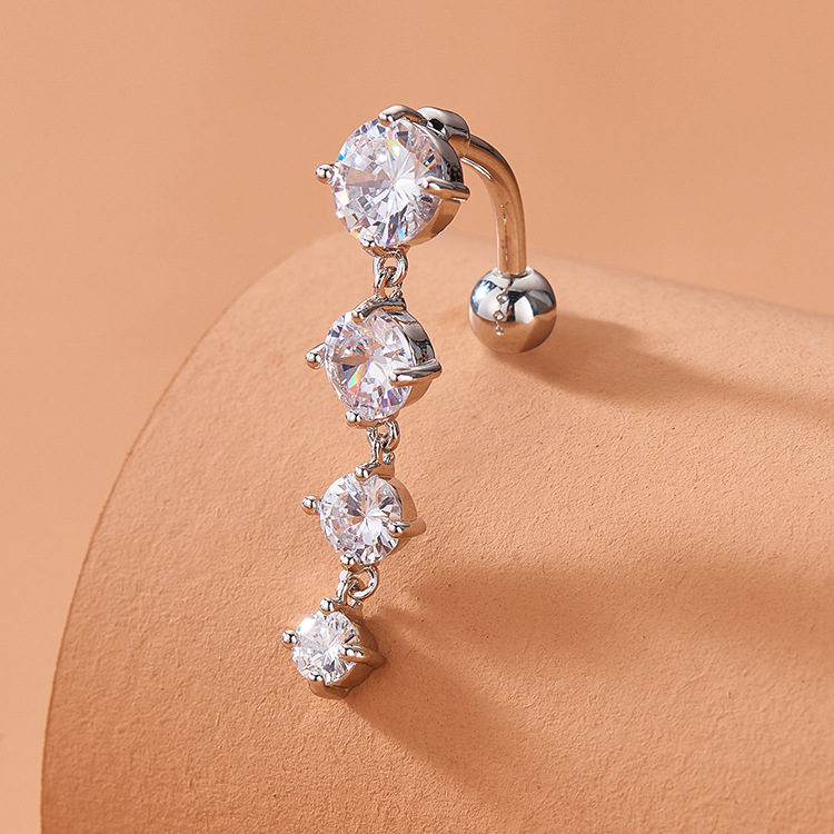 欧米のinsの新型の4節のジルコンはファッションのへその輪の腹の皮を巻き戻してアイデアの人体を刺してへその釘を刺します。