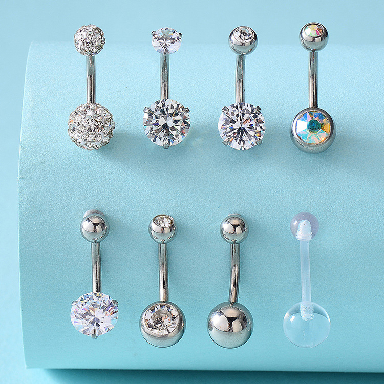 欧米のステンレスのジルコンは水晶の玉のへそを入れてへその輪の腹の皮を打って刺します。