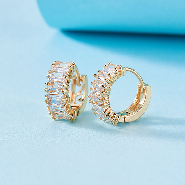 欧米のinsレトロな個性の一列の透かし彫りの長方形のジルコンの潮流は簡単に耳を掛けて耳飾りの耳輪を飾ります。