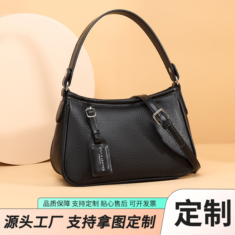 カスタマイズされた本革クロスボーダー甘くてクールな脇の下バッグテクスチャニッチクロスボディバッグカーフトップレイヤーレザーファッショナブルでシンプルなライチパターン