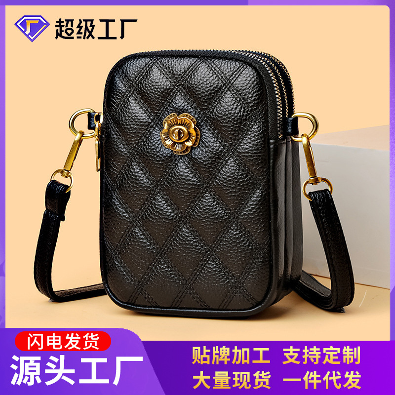クロスボーダー新型縦型携帯電話バッグレトロ頭層牛革シングル肩斜め掛けバッグ中年ママ鍵小銭入れ