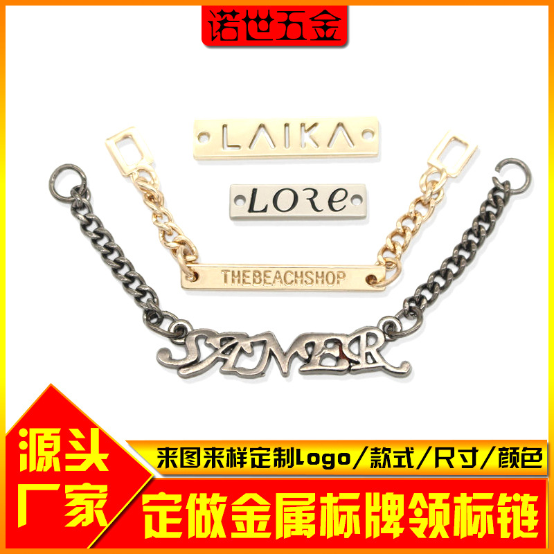 【メーカー生産】新型合金の襟のチェーンの服装の部品は金属を決めてロゴの金属の標識のネームプレートをします。