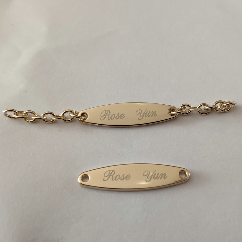オーダーメイドレーザー空白ネームプレート亜鉛合金襟チェーンマーク工場は金色の楕円形看板ロゴ服の商標を掛けています。