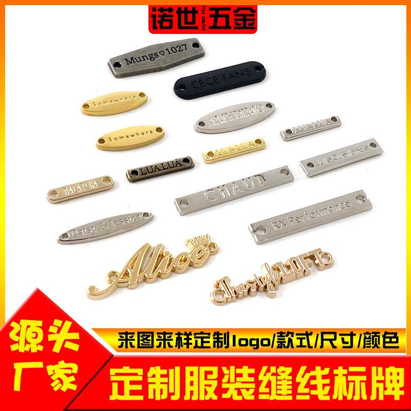 牌仔金属銘板亜鉛合金ダイカスト銘板義烏アルファベットロゴ服装商標長方形金属標識