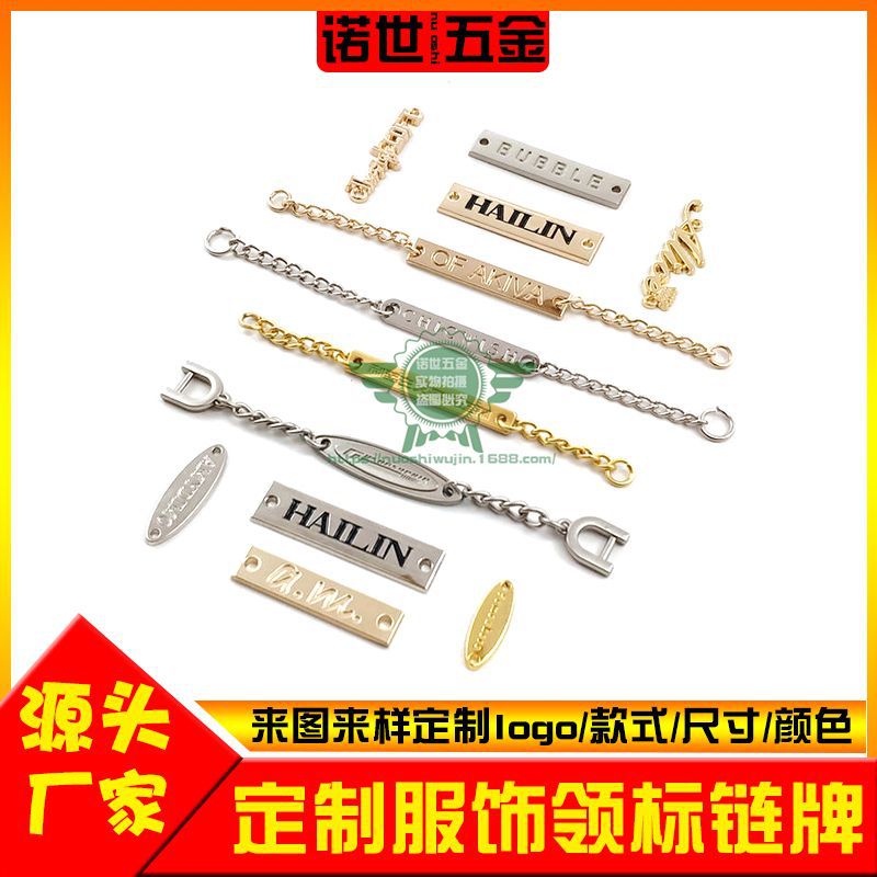 カスタムダイカスト金属ロゴコート襟チェーン金物看板服装亜鉛合金チェーンhandmadeネームプレート