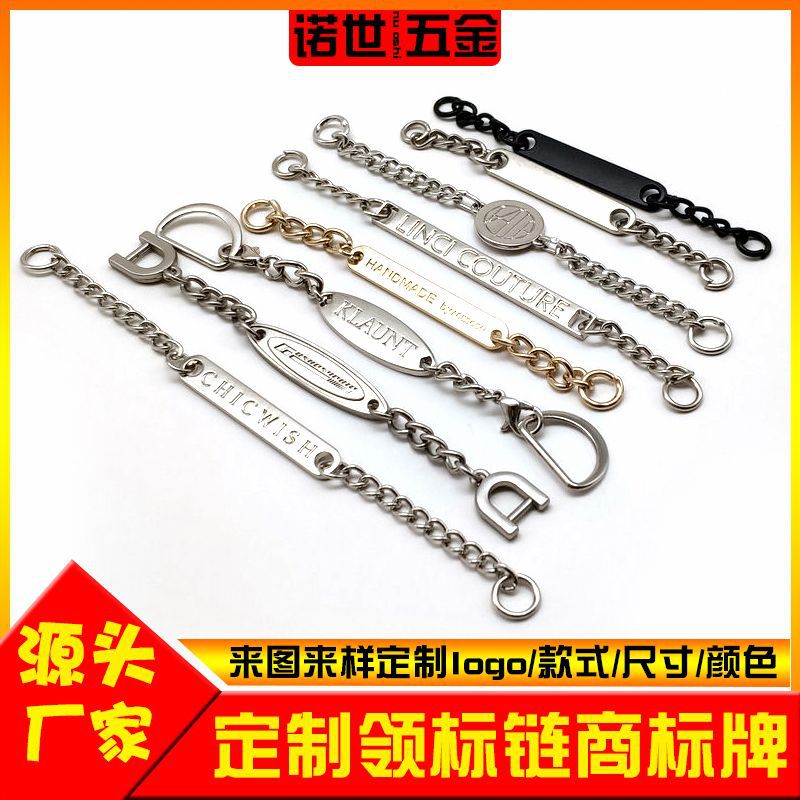 亜鉛合金の襟のチェーンの金属のロゴのコートの金属の標識の服装のチェーンの手縫いの凹凸のアルファベットの銘板の現物