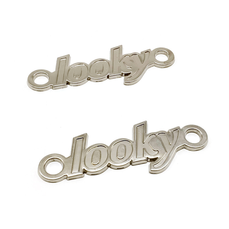 メーカー製バッグ部品アルファベットロゴ金物定札製作腐食銅銘板ピン亜鉛合金塗装