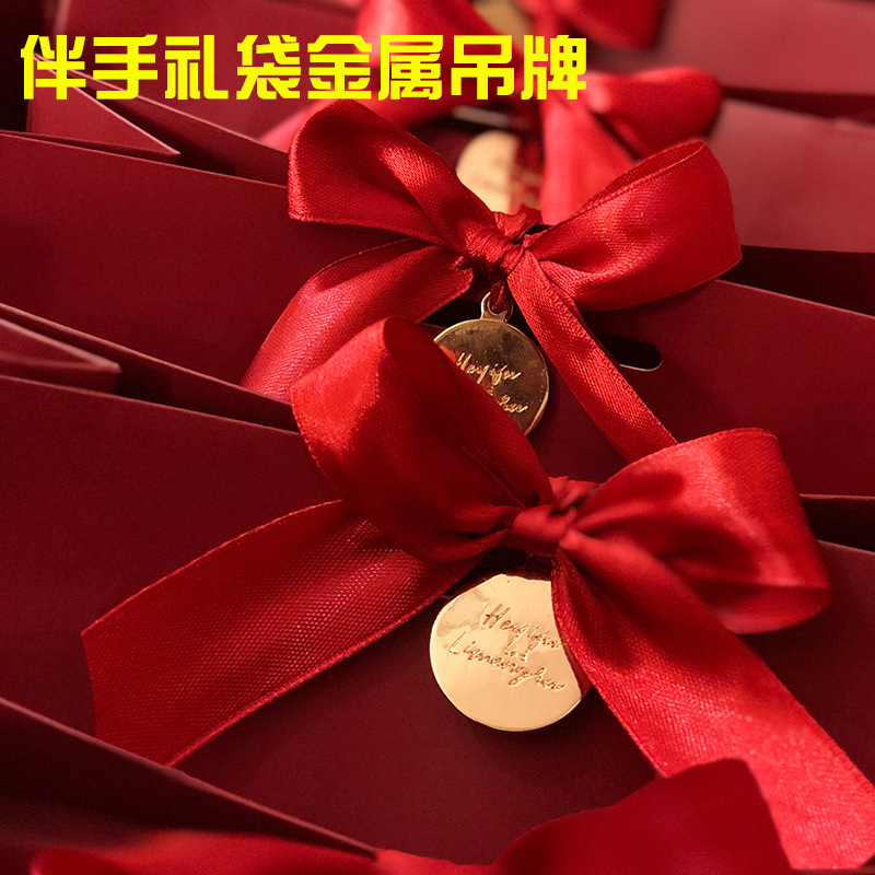 お土産金属吊り札亜鉛合金ダイカスト円形商標銘板手提げ袋リボンロゴにドリル小酒標を入れる