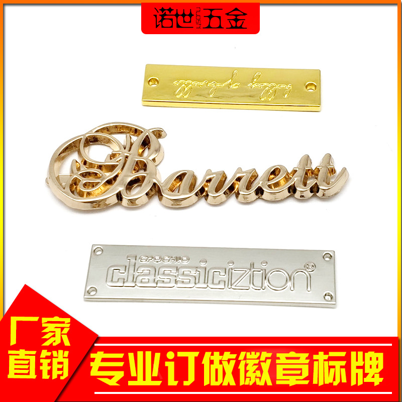 靴帯金物エッチング銘板湯たんぽアルファベット銘板ケースロゴ亜鉛合金ダイカストバッグ商標鉄札