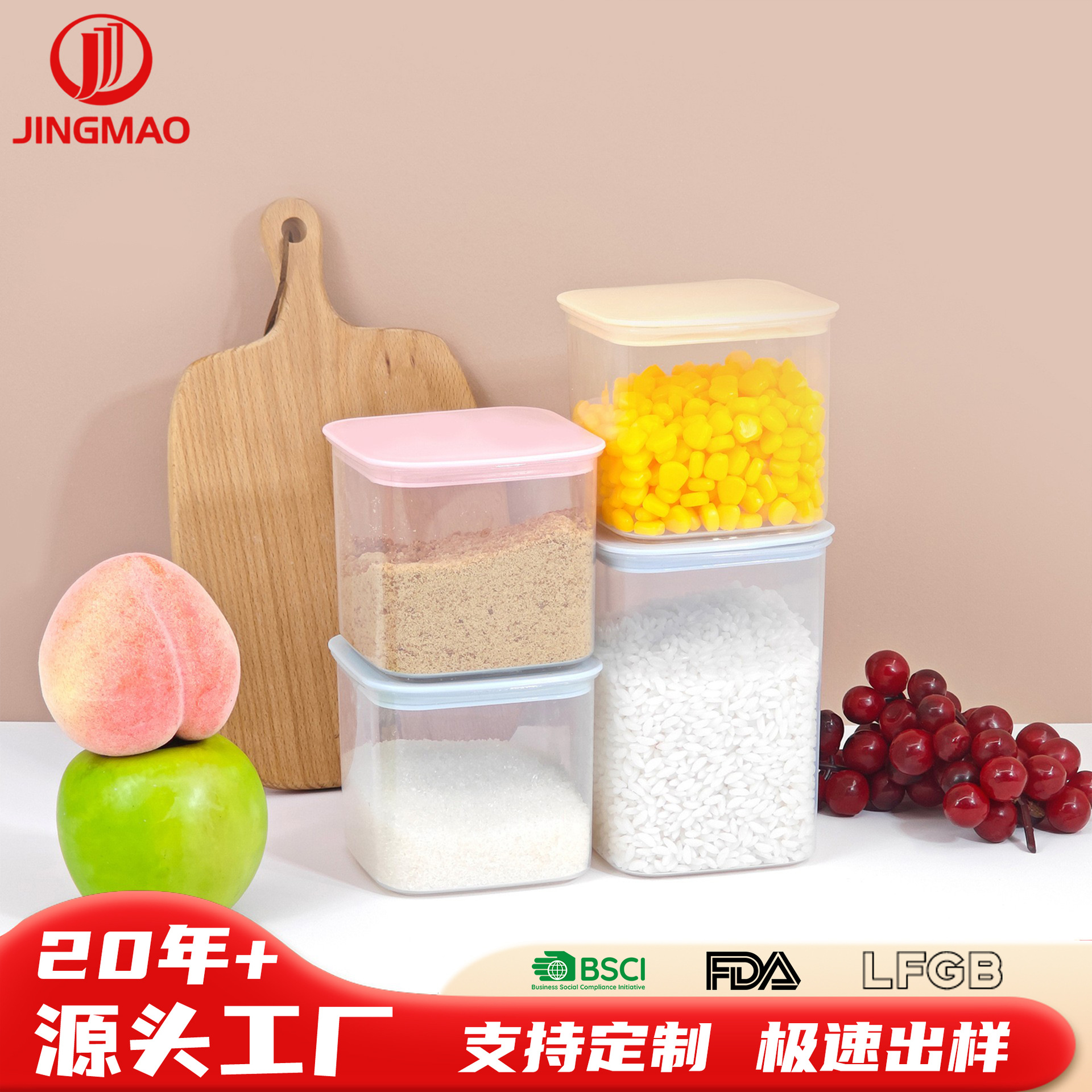 キッチン収納穀物プレス蓋食品正方形積み重ね可能な透明密封瓶冷蔵庫食品保存ボックス
