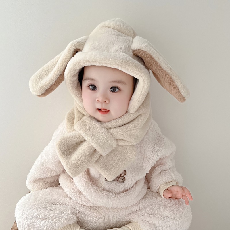 赤ちゃんの帽子のマフラーの一体の毛の帽子の冬の子供の保温の顔の赤ちゃんのウサギの耳の防寒のマフラーの帽子