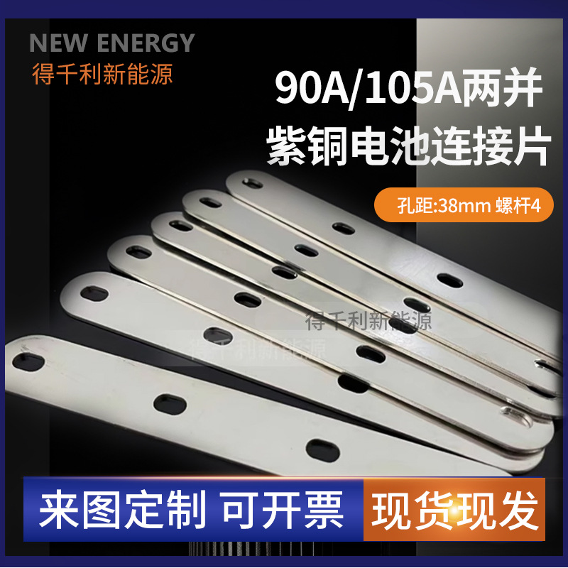 紫銅リチウム電池接続片90a 105a純銅無溶接4穴スクリュー4穴距離38両
