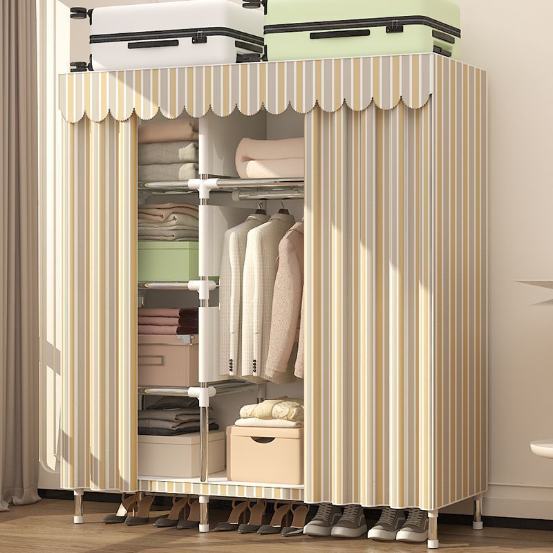 シンプルな布製ワードローブ鋼管厚く強化された大型ダブルシェルフワードローブ収納ラックソース工場卸売