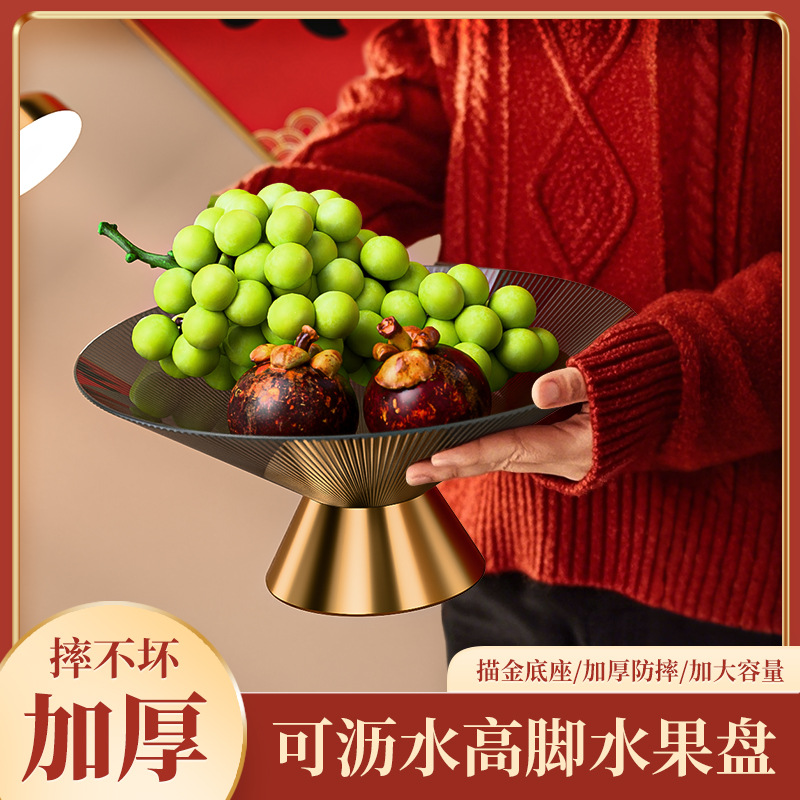 新しい中国式の高い足のガラスの果物の皿は家庭用の客間のお茶のいくつかの置物の大容量の果物の箱のキャンディーの皿を感じます。