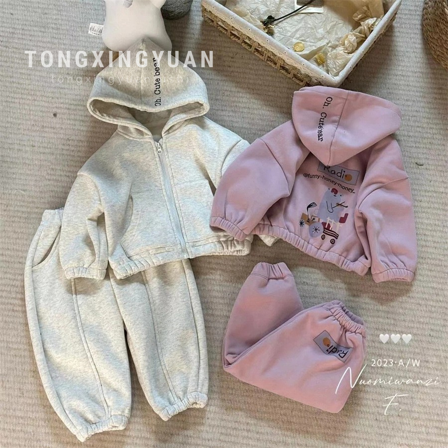 童星円子供セット秋装新商品洋気女の子韓国版プリントアニメ熊秋冬レジャー2点セット