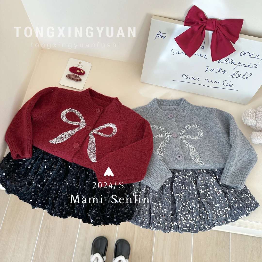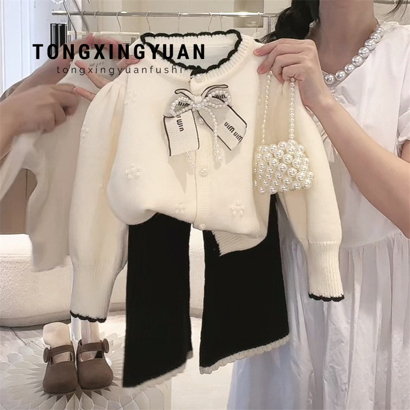 Tongxingyuan 女の子セーターセット 2025 秋の新子供服韓国スタイルカジュアルトップスカートベビー服