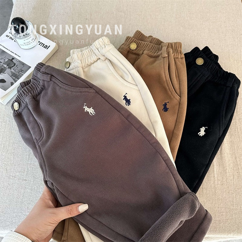 男の子用2025秋冬カジュアルパンツ、幼児用パンツ、男の子用一体型フリースストレッチパンツ、おしゃれな裏起毛厚手パンツ