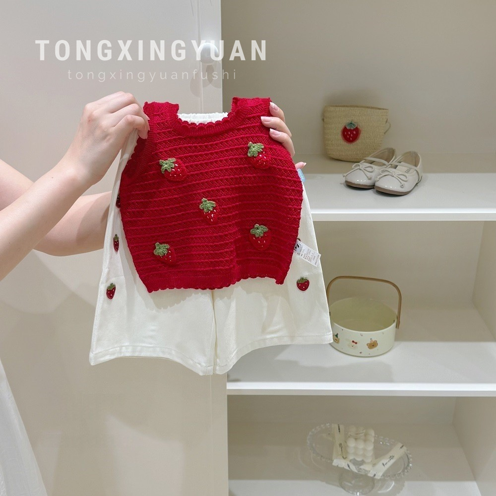 【童星円】いちご味の夏! 女の赤ちゃんの氷感のベストの上着の夏の2025かわいいスーツの潮