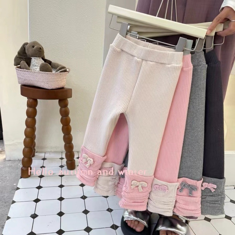 子供の星の丸い女の子の2024秋冬の金の韓国版のベルベットの女性の赤ちゃんは厚い洋気のファッションの蝶結びのズボンを打ちます。