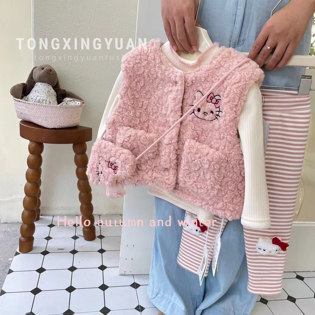 女の子の子羊のベルベットの馬甲秋冬金2024新女性の赤ちゃんの冬服保温ベストは冬の子供服を着ている